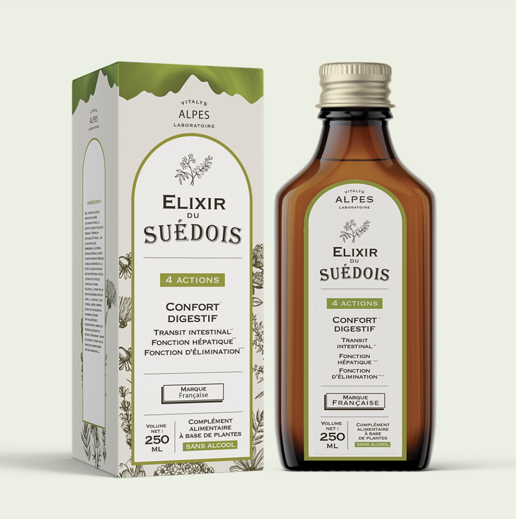 Notre mode de vie moderne (alimentation déséquilibrée, stress, tabac, alcool…) peut avoir des influences sur notre appareil digestif et le déséquilibrer. Résultat : ballonnements, transit irrégulier et accumulation de toxines au niveau du foie. Les fonctions détoxifiantes sont alors sursollicitées, réduisant l’élimination naturelle des toxines et entraînant fatigue et perte de vitalité. Pour retrouver confort et énergie, il est essentiel de soutenir l’équilibre digestif et les fonctions naturelles d’élimination. En plus d’une alimentation variée et équilibrée, notre Elixir du Suédois peut vous y aider.