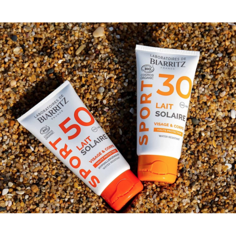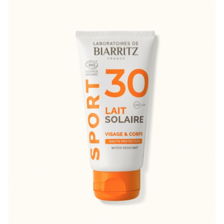 Certifié bio, ce lait solaire SPF30 sport est enrichi en eau florale de camomille bio, reconnue pour ses propriétés apaisantes, et en glycérine végétale bio.