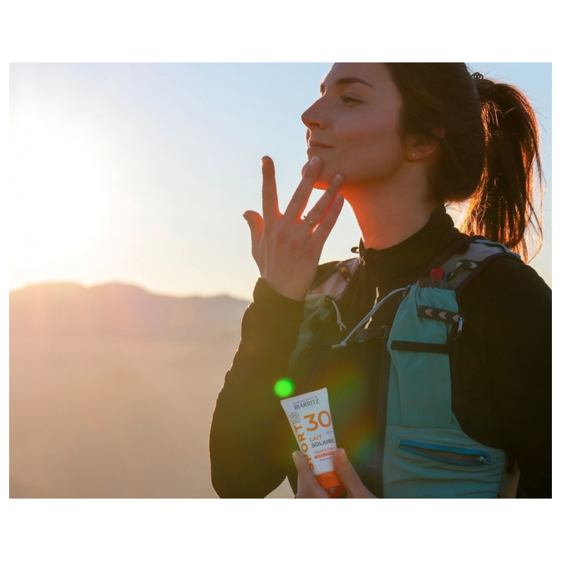 Le lait solaire SPF30 sport est le compagnon indispensable des sportifs. Doté d'une haute protection naturelle, il combine des écrans minéraux anti-UVA/UVB et un extrait breveté d'algue rouge, Alga-Gorria®, un puissant antioxydant qui neutralise les radicaux libres pour prévenir les dommages cellulaires et le vieillissement cutané causés par le soleil.