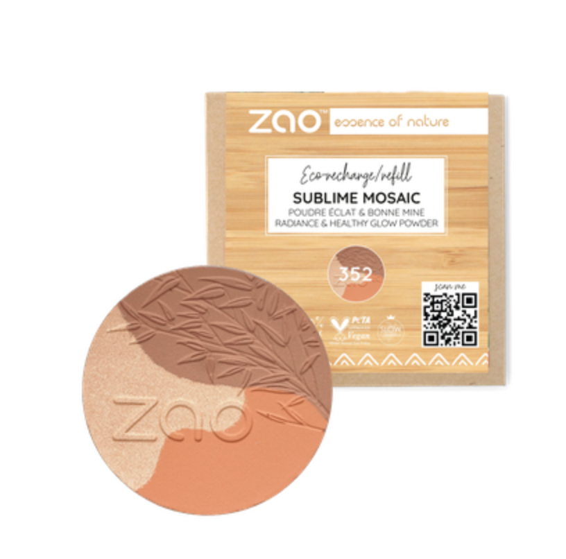 Pour donner de l'éclat et un effet bonne mine à votre teint, prélevez les 3 teintes de la Sublime mosaic à l'aide du Pinceau poudre 702 avec un mouvement circulaire et appliquez sur les contours de votre visage.Vous pouvez également utiliser les trois teintes de la Sublime mosaic séparément, la plus claire pour illuminer certaines zones (menton, arc de cupidon, nez, …), la rose en fard à joues et la marron en terre cuite pour structurer la forme du visage.