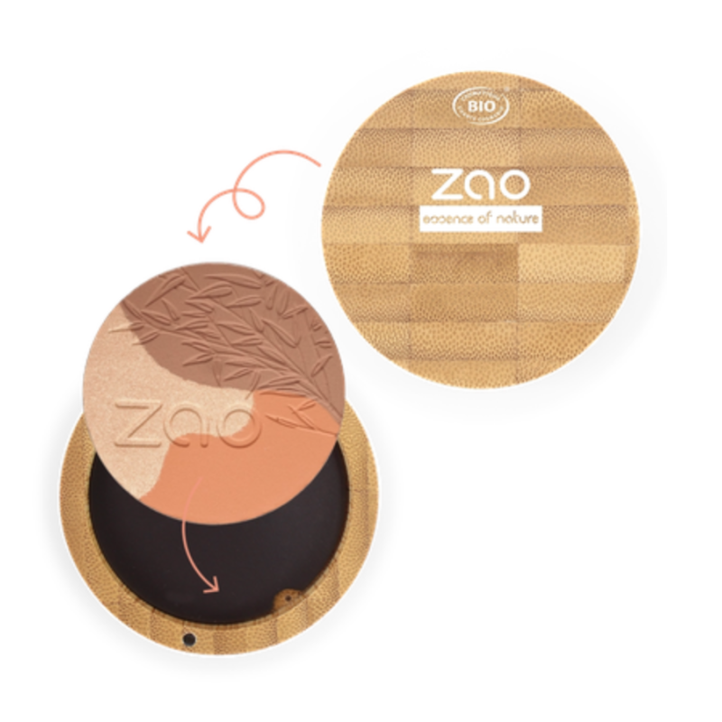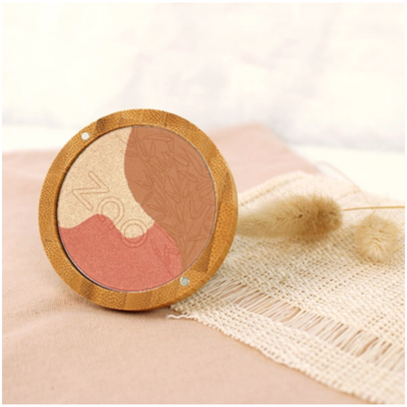 Pour donner de l'éclat et un effet bonne mine à votre teint, prélevez les 3 teintes de la Sublime mosaic à l'aide du Pinceau poudre 702 avec un mouvement circulaire et appliquez sur les contours de votre visage.Vous pouvez également utiliser les trois teintes de la Sublime mosaic séparément, la plus claire pour illuminer certaines zones (menton, arc de cupidon, nez, …), la rose en fard à joues et la marron en terre cuite pour structurer la forme du visage.