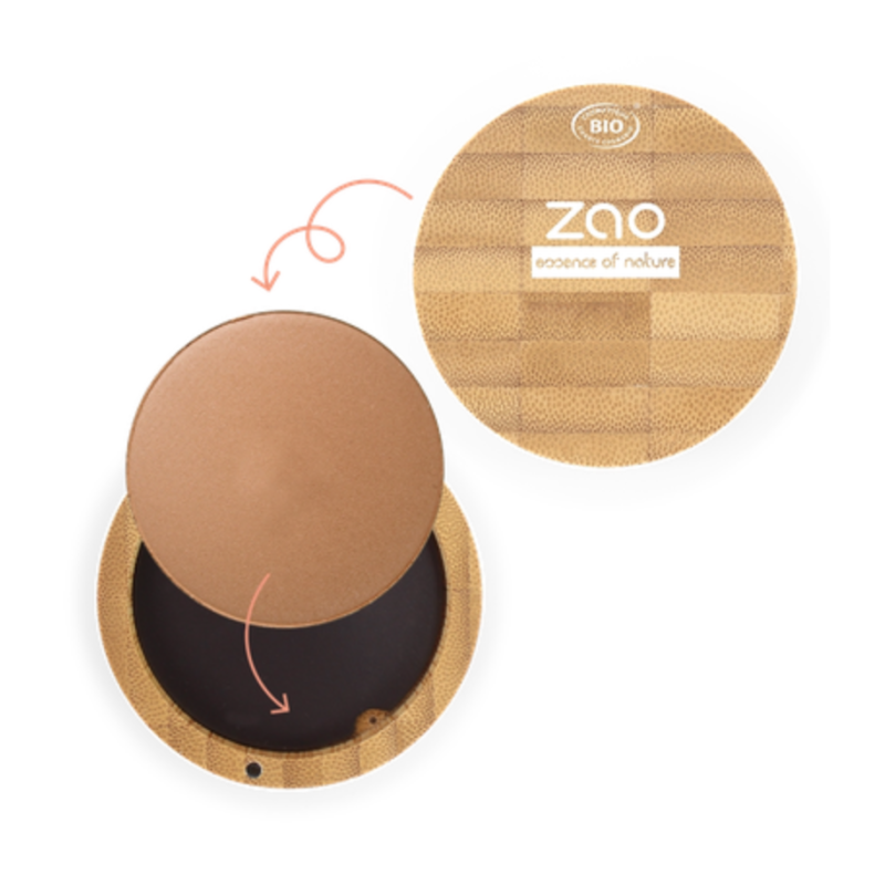 A l’aide du Pinceau blush, appliquez votre terre cuite minérale sur le contour de votre visage en dessinant le chiffre 3 de chaque côté : partez du haut du front en suivant les racines de vos cheveux, descendez en suivant la courbe des pommettes et terminez sur la ligne des maxillaires. Appliquez également la terre cuite minérale sur le bout du nez (pour les nez longs) ou sur les ailes du nez (pour les nez épais). La terre cuite ZAO est rechargeable, vous pouvez y glisser une recharge poudre de votre choix (fard à joues, terre cuite, poudre compacte ...). Amidon de maïs bioL’amidon de maïs biologique est un support végétal permettant une meilleure adhésion de la poudre sur la peau, et donc une meilleure tenue du maquillage. Il facilite la dispersion des pigments et aide, en cela, à l’unicité de la teinte sur la peau. Squalane végétalExtrait de l’huile d’olive, le Squalane végétal est un dérivé du squalène qui est un composant naturel du sébum humain. Son excellente affinité avec la peau, de par sa similarité avec les lipides naturels cutanés, et ses propriétés émollientes en font un actif idéal. Il renforce la barrière hydrolipidique cutanée, assouplit la peau et la protège de la déshydratation. Huile de ricin bioCette huile est intéressante car elle est émolliente ce qui permet d’assouplir et d’adoucir la peau. Elle est également hydratante ce qui augmente la teneur en eau de la peau et la maintient douce et lisse. Poudre de bambouSubstance blanche extraite des jointures du bambou. Grâce à sa teneur élevée en silice, elle reminéralise, hydrate et participe à la régénération de votre peau tout en atténuant la brillance des peaux mixtes et grasses. Inci 10% OF THE TOTAL INGREDIENTS ARE FROM ORGANIC FARMING100% OF THE TOTAL INGREDIENTS ARE OF NATURAL ORIGIN INGREDIENTS LIST (F7): MICA, ZEA MAYS (CORN) STARCH*, ZINC STEARATE, POLYGLYCERYL-3 DIISOSTEARATE, OCTYLDODECANOL, OCTYLDODECYL STEAROYL STEARATE, MAGNESIUM ALUMINUM SILICATE, TOCOPHEROL, GLYCERIN, BAMBUSA ARUNDINACEA STEM POWDER, HELIANTHUS ANNUUS (SUNFLOWER) SEED OIL*, AQUA (WATER), SUCROSE TRISTEARATE, ADANSONIA DIGITATA (BAOBAB) SEED OIL*, PARFUM (FRAGRANCE), SODIUM ANISATE, SODIUM LEVULINATE, BAMBUSA ARUNDINACEA (BAMBOO) STEM EXTRACT*. MAY CONTAIN +/- : CI 77891 (TITANIUM DIOXIDE), CI 77491 (IRON OXIDES), CI 77492 (IRON OXIDES), CI 77499 (IRON OXIDES). *ingredients from Organic Farming.