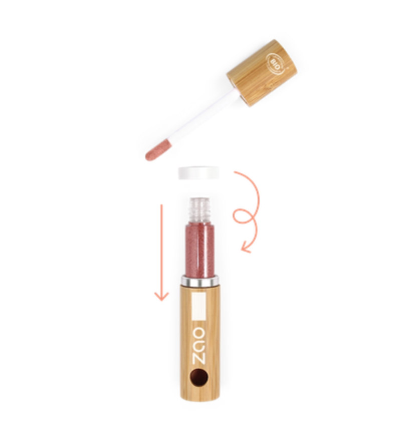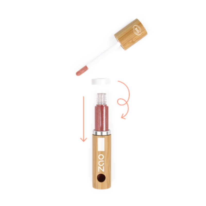 Déposez votre gloss au centre des lèvres à l’aide de l’applicateur mousse et étirer la matière vers les commissures et le bord des lèvres.Le gloss peut être porté seul ou par-dessus un rouge à lèvres.