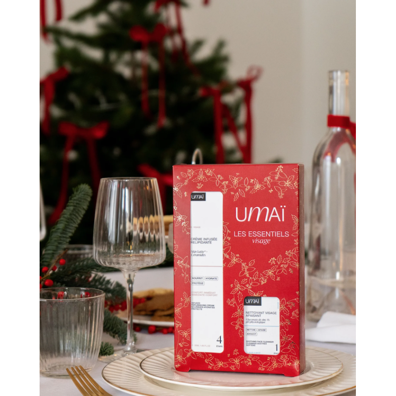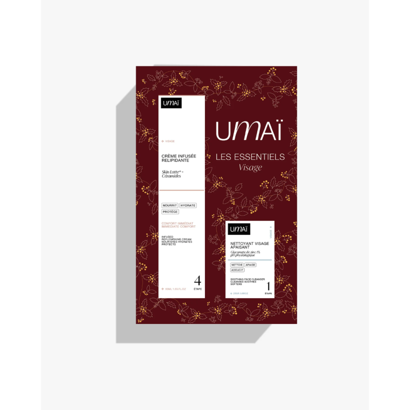 Crème infusée relipidante :Skin Latte® : Une infusion unique de végétaux fermentés dans un lait de riz, aux vertus apaisantes et antioxydantes, développée avec l’expertise du laboratoire Umaï. Issu de la biotechnologie. (origine : Italie)Céramides : Action biomimétique. Agissent comme un ciment intercellulaire pour renforcer la barrière cutanée.Peptides : Action biomimétique. Messager cellulaire qui stimule la régénération cutanée.Nettoyant visage apaisant :Gluconate de zinc 1% : Réduit les rougeurs et apaise (France)Glycérine végétale (colza) : Maintient l’hydratation de la barrière cutanée (France).