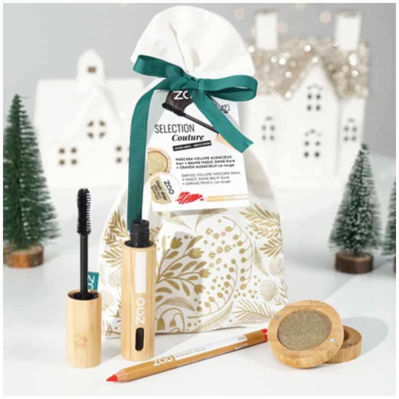 La sélection Couture, dans son joli pochon à ruban vert, est composée de :- Baume Magic Shine - 292 Gold :En édition limitée pour les fêtes, laissez-vous envoûter par notre tout nouveau baume pailleté doré ! Infusé de fines paillettes en cellulose, ce baume sublime le teint, les yeux ou les lèvres par petites touches.