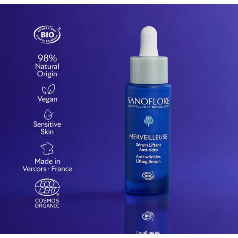 Sérum anti-rides intégral certifié bio, composé à 98 % d’ingrédients d’origine naturelle.Sa formule contient :