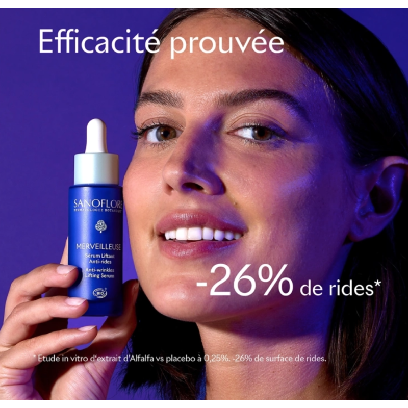 Appliquer quelques gouttes matin et soir sur le visage, le cou et le décolleté, après la Crème ou le Fluide MERVEILLEUSE.
