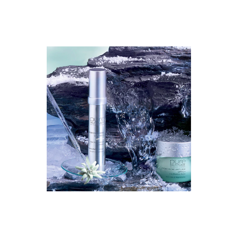 Association inédite des ressources de la montagne et de la Bio-Technologie, le Sérum Concentré Lift4810 fond sur la peau pour estomper instantanément les traits fatigués, sculpter les contours du visage et raffermir durablement l’épiderme. Les cryo-extraits de baies d’Arctique (airelle, framboise, mûre) tonifient et détoxifient, tandis que le trio actif de plantes des montagnes et l’eau des glaciers du Mont-Blanc, associés à l’edelweiss, protègent et régénèrent. Enfin, l’extrait d'Osilift Bio® procure un effet liftant et tenseur défatiguant immédiat.